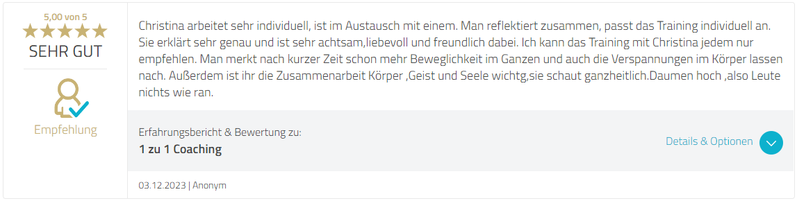 Mit diesem Wissen helfe ich meinen Kunden, ihre natürliche Beweglichkeit wiederzuentdecken und zu stärken – für mehr Lebensqualität und langfristige Gesundheit.